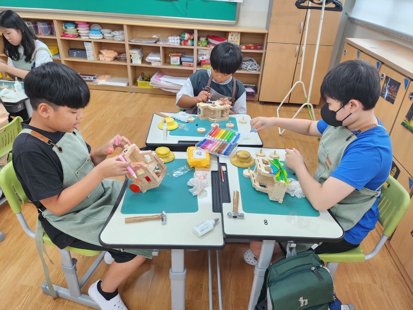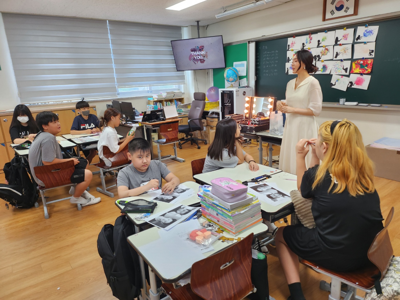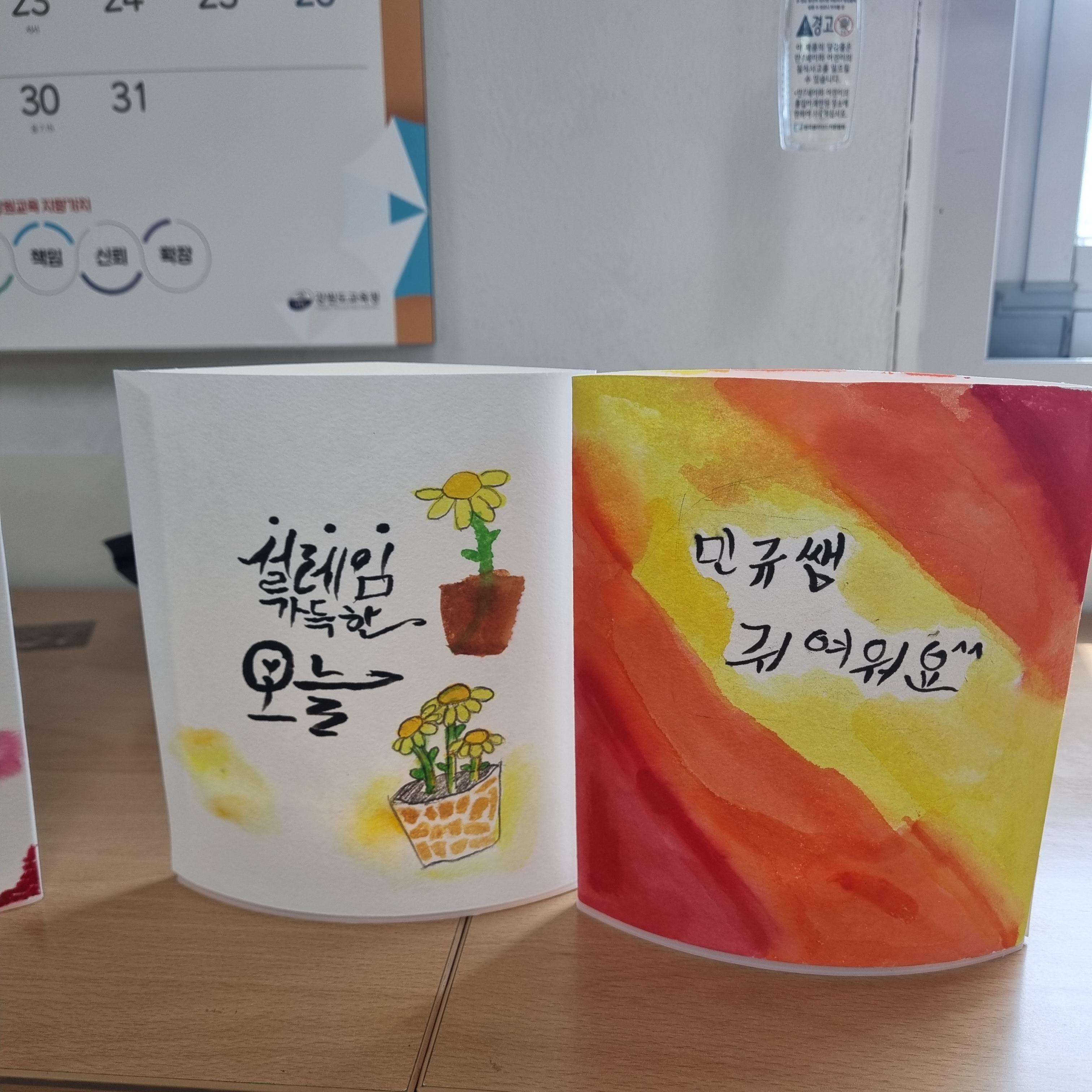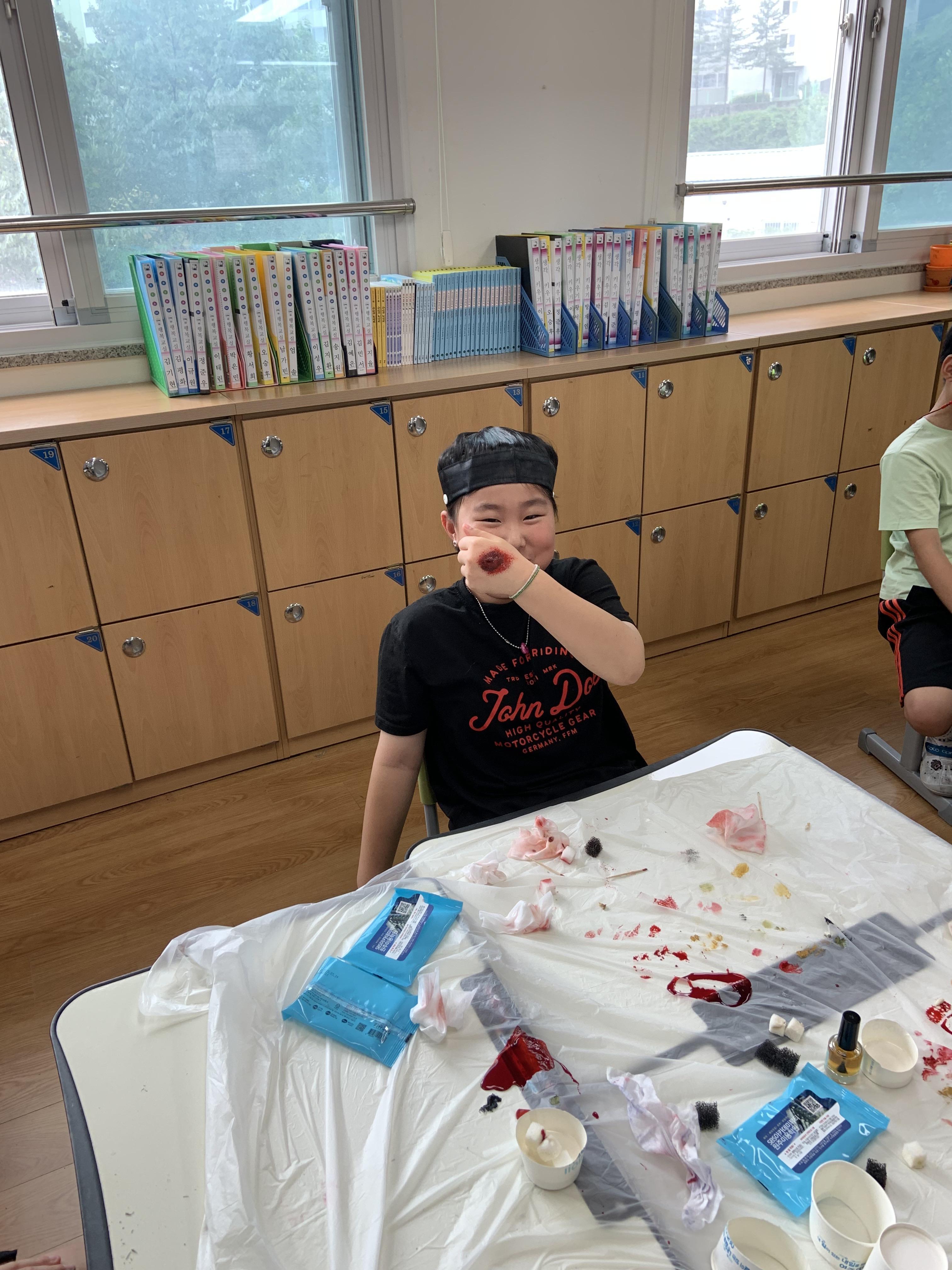 가죽공예, 우드공예, 특수분장, 메이크업, 고체향수, 수채캘리그래피까지 6종류의 직업체험이 있었답니다.