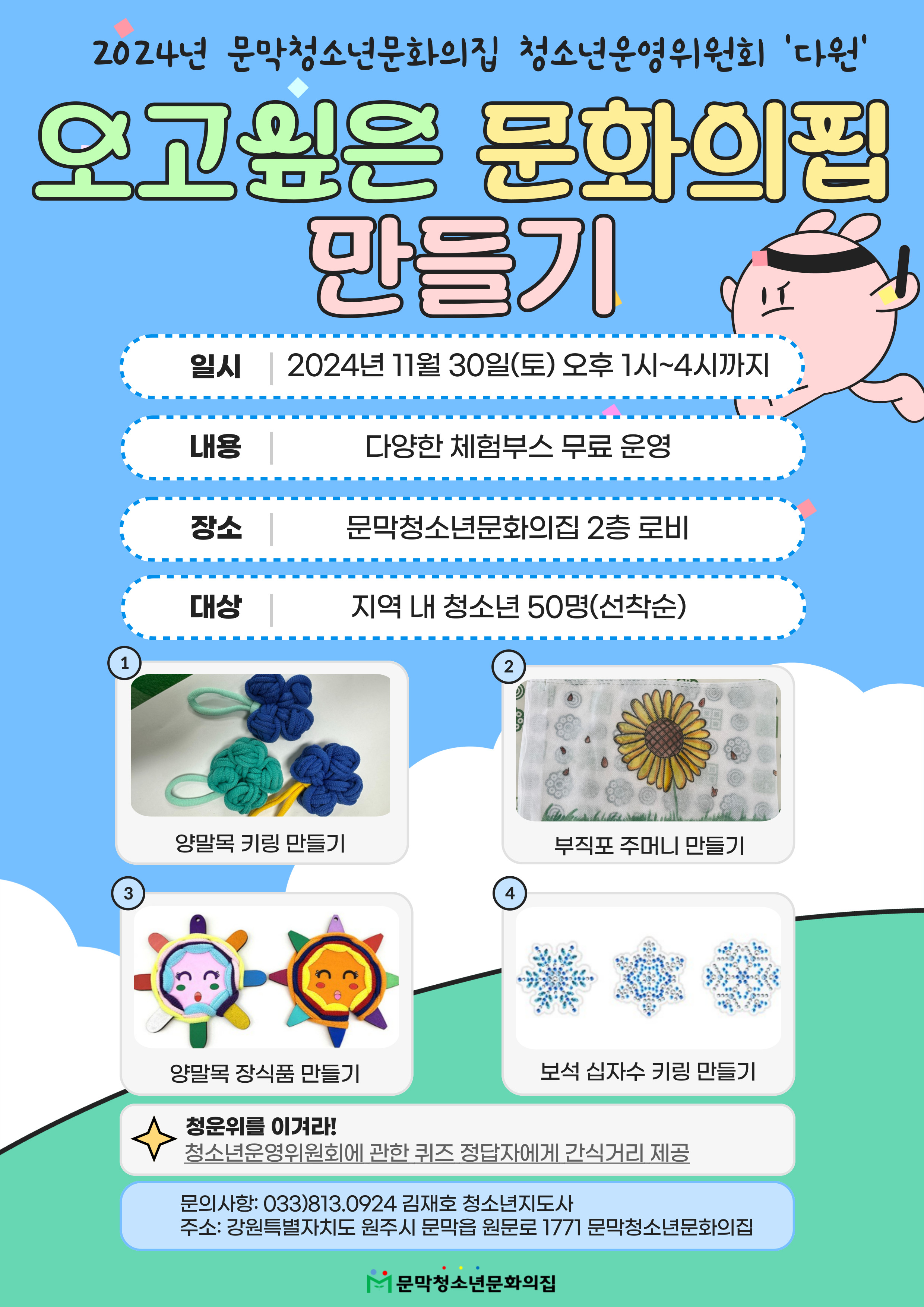 문의사항: 033)813-0924 김재호 청소년지도사