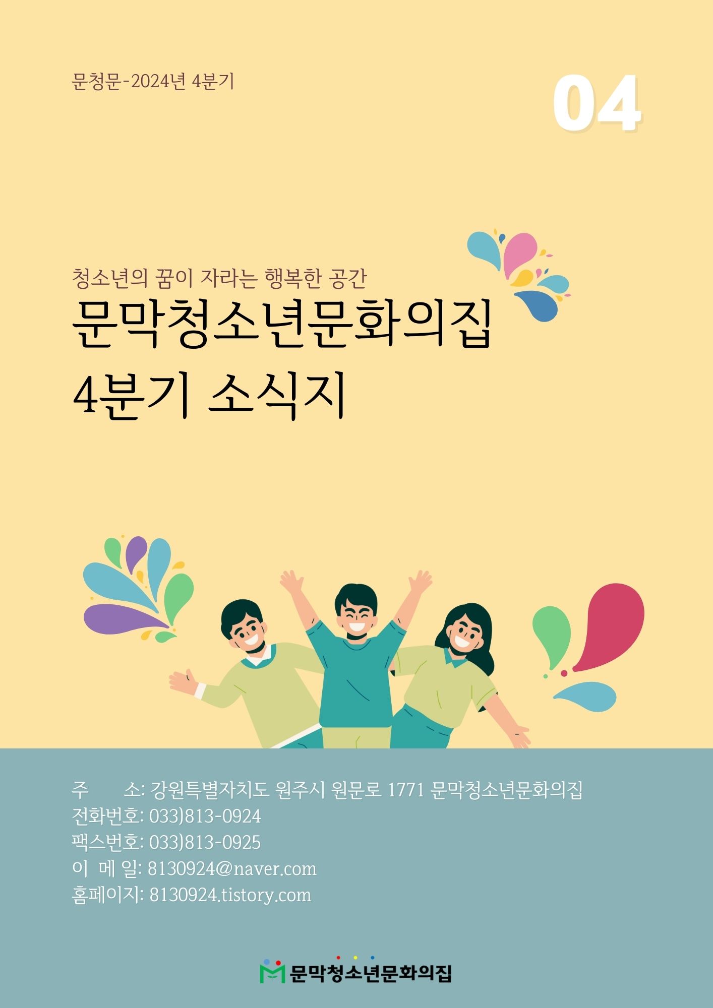 | 문막청소년문화의집 2024년 1분기 소식지 (0) | 2024.04.09 |