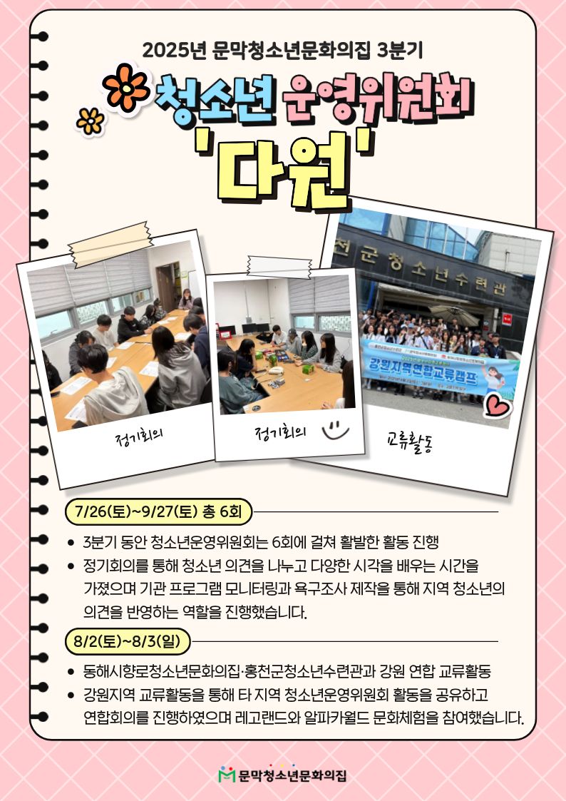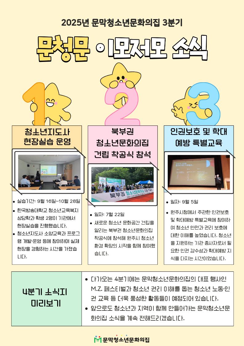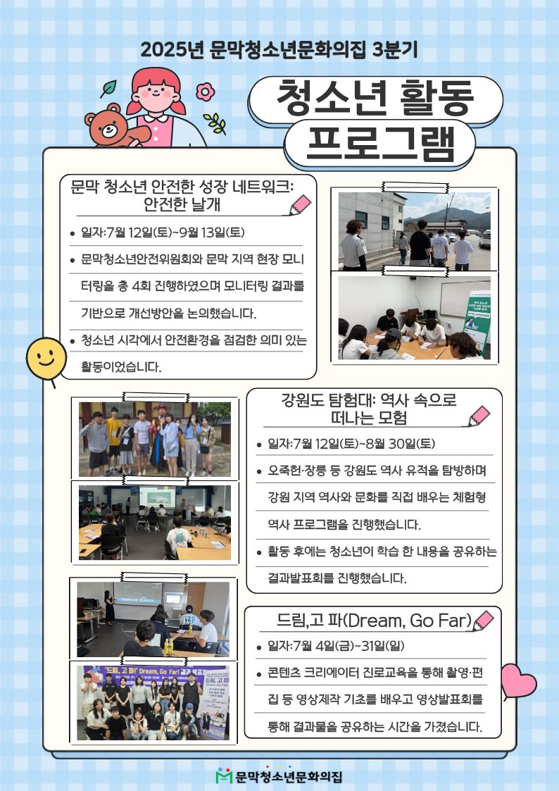 문막청소년문화의집의 3분기 이야기를 지금 바로 만나보세요 ✨