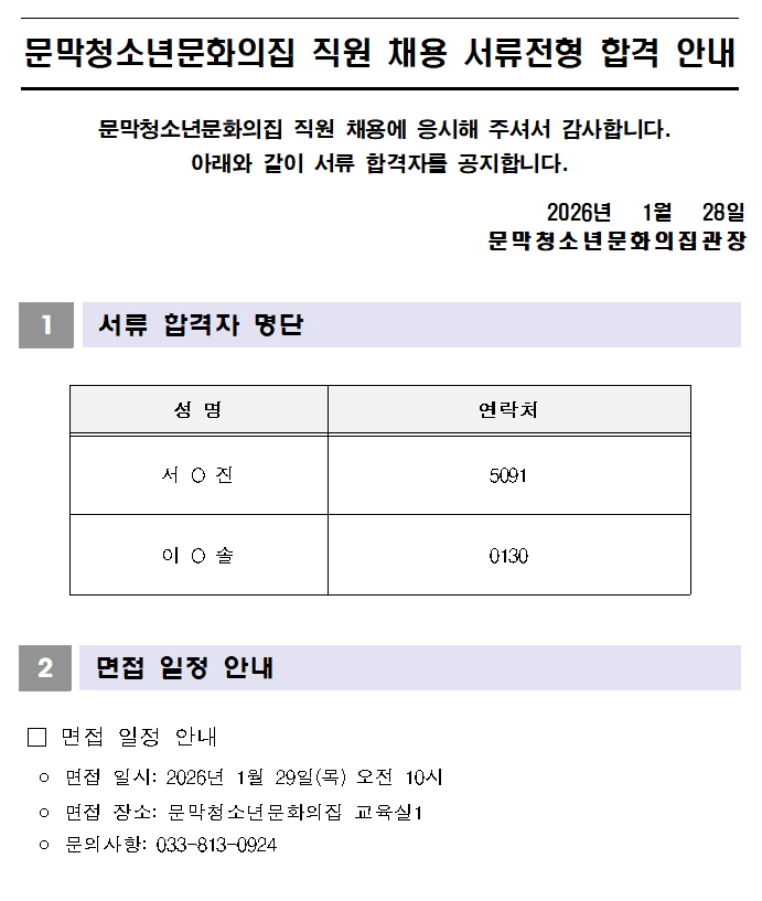 | 2025년 문막청소년문화의집 배치청소년지도사 채용 재공고 (1) | 2025.12.20 |