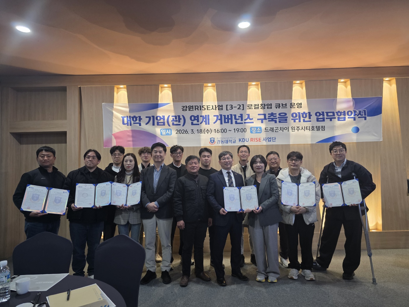 | 경동대학교 RISE 사업단_대학 ∙ 기업 ∙ 기관 연계 거버넌스 구축 업무협약 (0) | 2026.02.27 |