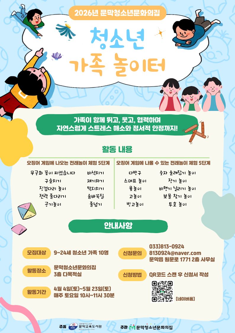| 청소년 가족 놀이터 참가자 모집 (0) | 2026.03.03 |